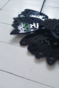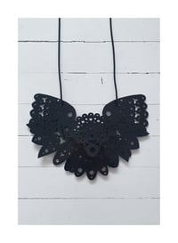 Handmade necklace after my sketch and design from laser cutplexiglass (recycled plastic), elastic string, plastic closure and Mimi pendant.
